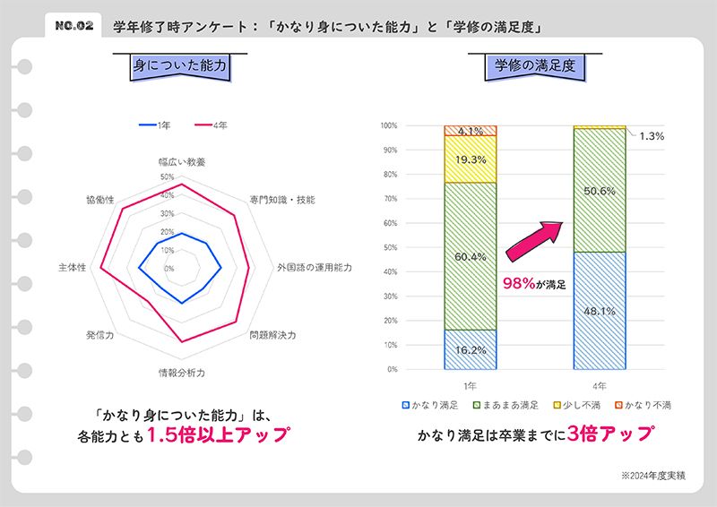 また、アセスメントの結果の一部を学生のみなさんや社会に公表することで、学生本位の教育の実現を目指しています。