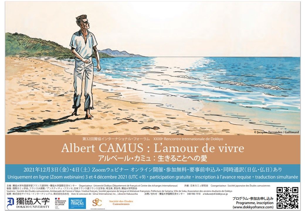 アルベール・カミュ没後60年を過ぎ、パンデミックによって混迷を極める時代にあって、カミュが守ろうとした人間の根源にかかわる諸価値は、ますます重要性を増しています。カミュが生きたのは暗く、激動する20世紀でしたが、彼の生涯は生きることへの愛に満ちていました。本フォーラムでは、国内外の研究者による講演・討論を通し、不条理と反抗の作家として知られるカミュのもうひとつの顔、「愛」の作家としてのカミュ像にせまります。お気軽にご参加ください。